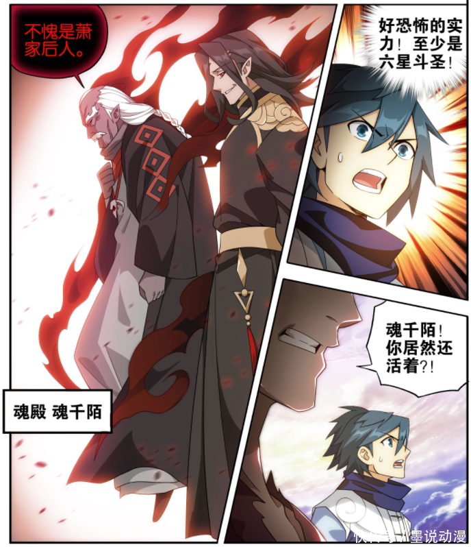 原本魂族用秘法,复活了4位元老,分别是魂生天、魂元天、魂尧和另一位不知名元老。在漫画版中,因为萧炎引爆死寂之门,导致魂生天和魂元天被炸死,只剩下魂尧和另一位长老,他们都是八星斗圣中期,目前还活得好好的。